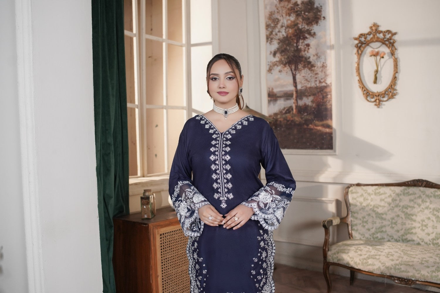 Nazneen Navy ( Embroided stitched 2 Pcs )