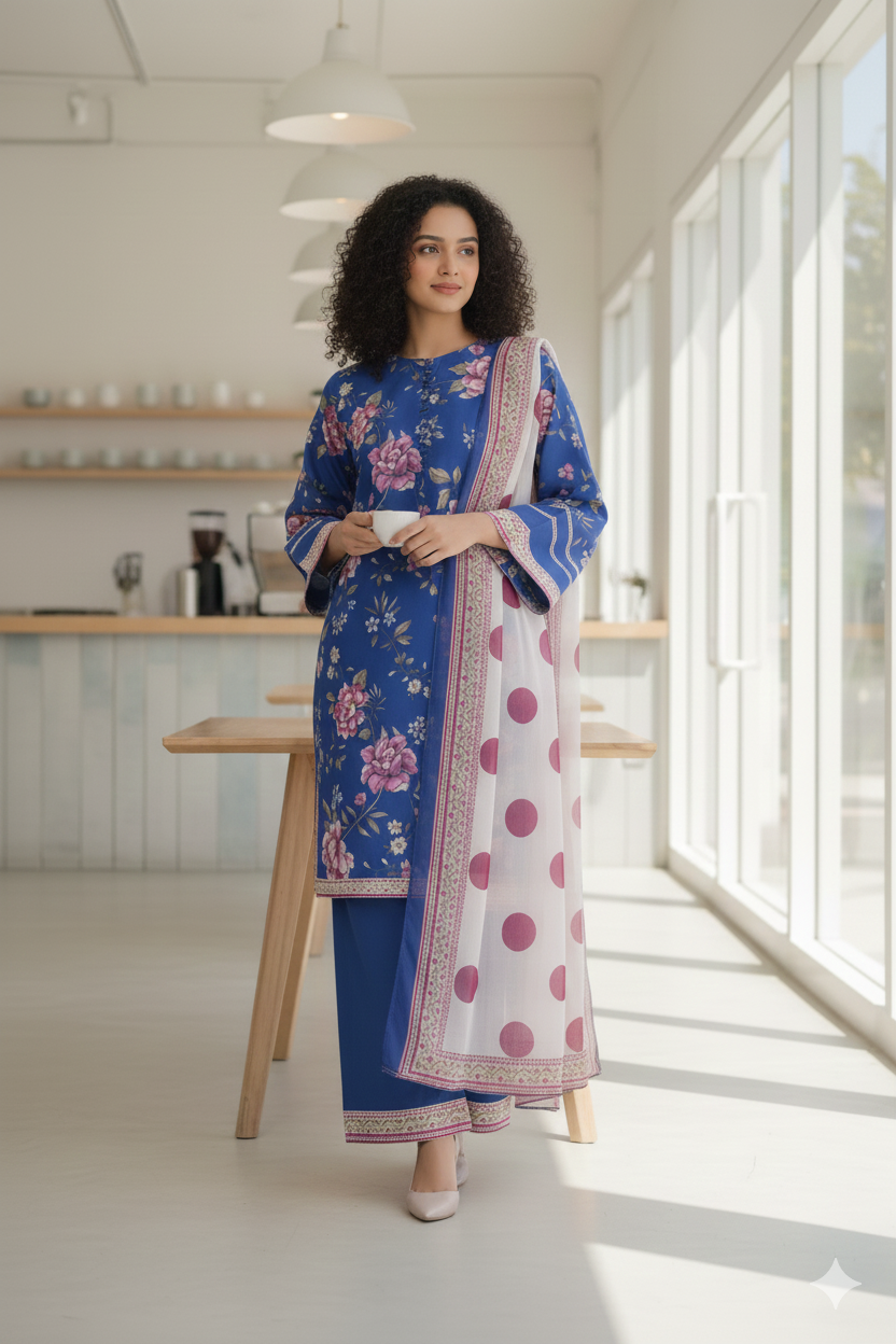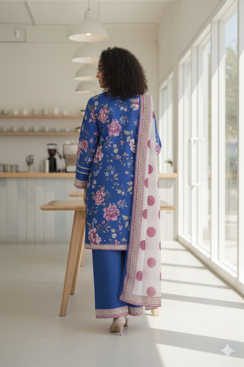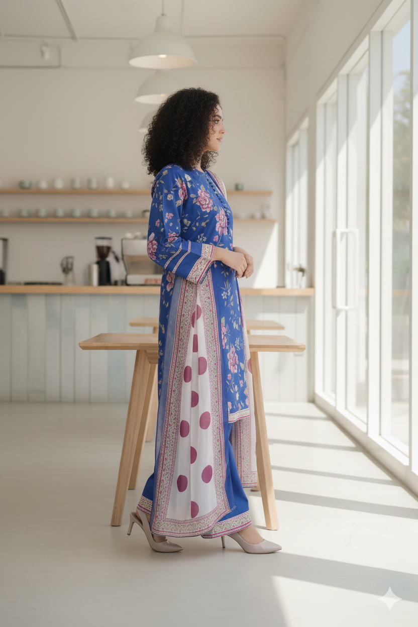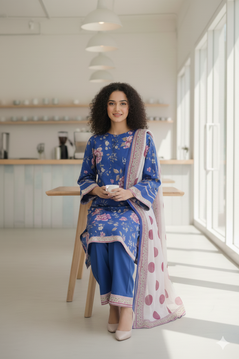 ✔ Design: A 3-piece set (kurta + straight-trousers + Dupatta) with a modern, relaxed fit.