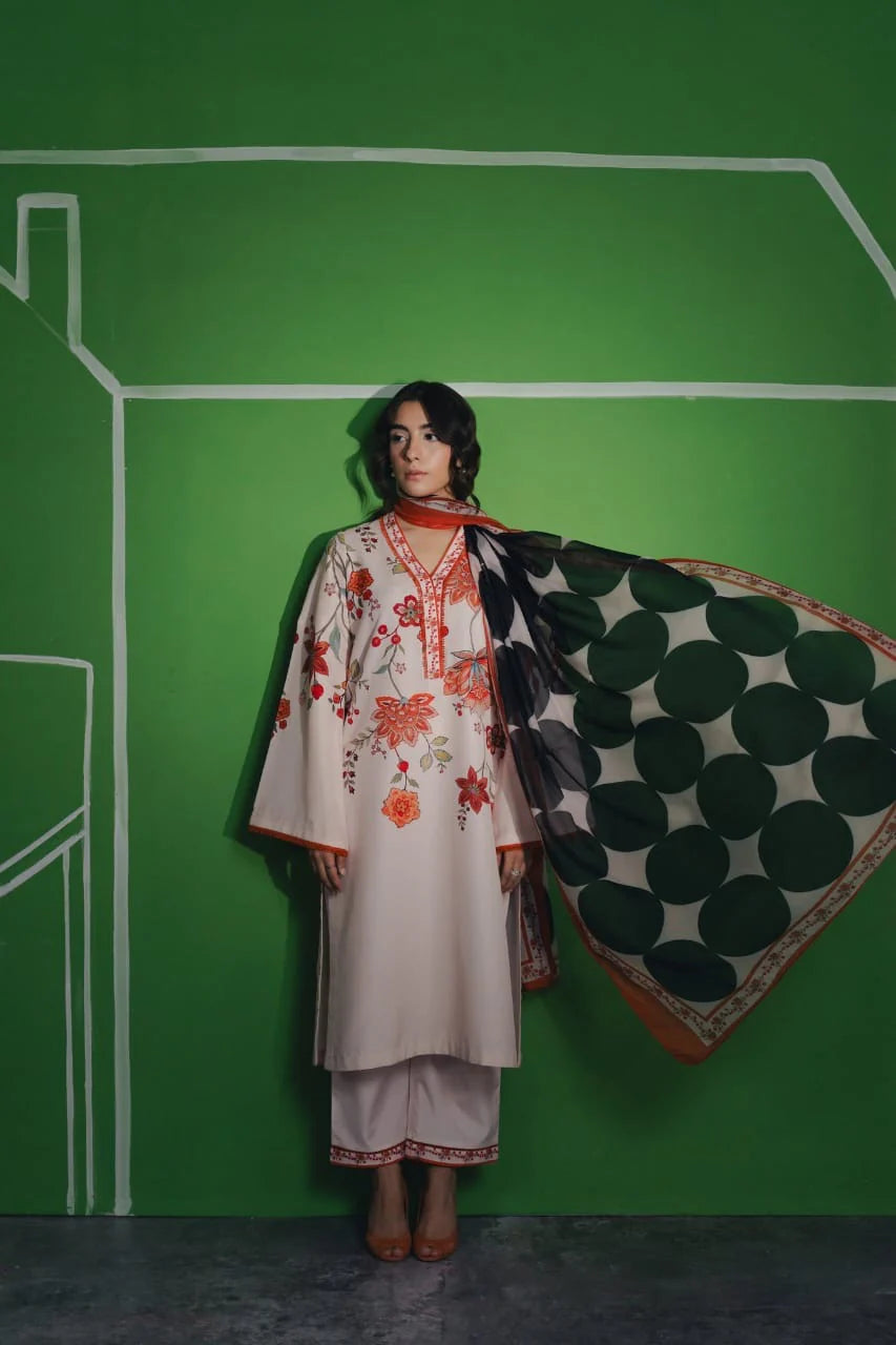 ✔ Design: A 3-piece set (kurta + dupatta + straight-trousers/shalwar) with a modern, relaxed fit.